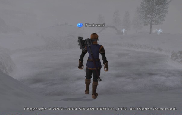まずはロンフォの川でマスを釣り、サンドに持ち帰って マスダンゴに調理。 それ持って、昨日と同様峠を越えて氷河へ。 いつ来ても寒そうな場所です。 遠くで氷エレが仲良くランデブーしてますね。 「ウフフ。つかまえてごらんなさい〜」 「待てぇ。アハハハ」 とか言い合ってんでしょうかw