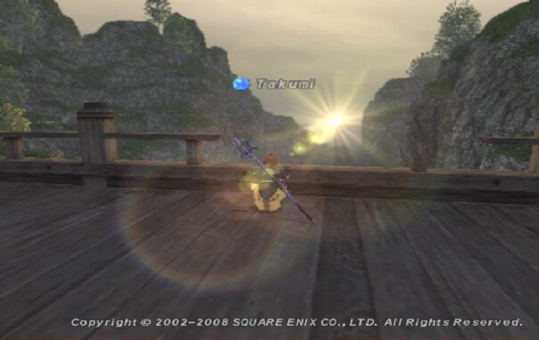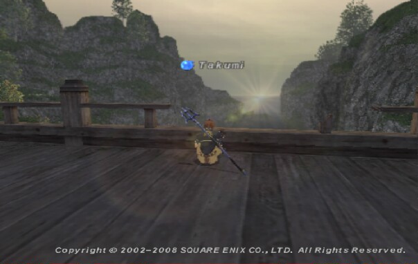 拠点テレポでブンカール浦に向かい、 カンパニエでにぎわっている拠点を横目に、マップ北東の橋へ。 ここは真東に水平線が見えるのでなかなかいいポイントです(´∀`)