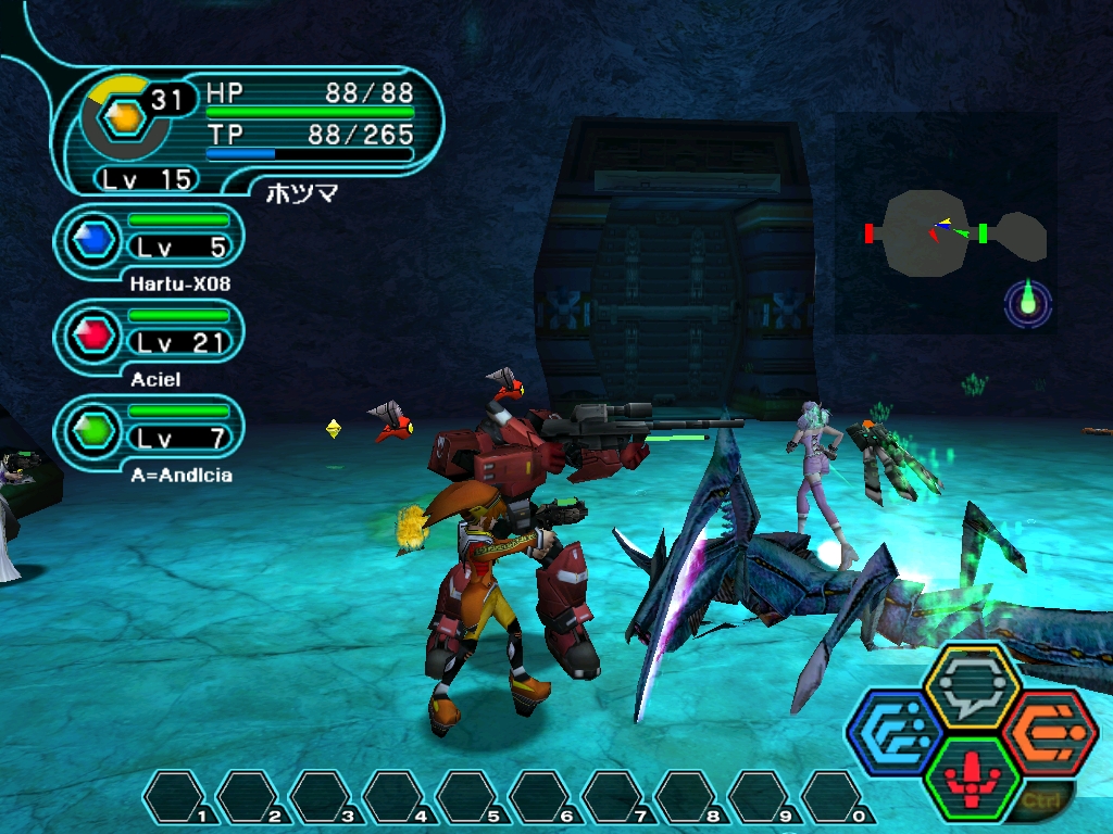 写真で、僕がオレンジ色の服を着たフォニューム。 アンさんが、白いローブを着たフォマール。 アシエルさんが、ピンクの服を着ているハニュエール。 ハーツさんが、赤いロボットのラキャストです。