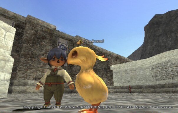 まずは第5戦。パシュハウ沼編は、とある有名なチョコボのストーリーになってますね。 このレースでは競走獣として、サボテンダーが出てくるんですが、 8連続でスピードアップのアビを使うという反則ぶりですw 1回目は、かなり差をつけられて負けてしまいましたね。 2回目でなんとか勝てました。ランダム要素の影響がかなり強いですね。 第5戦勝利で、チョコプラストルクをげっとしました。 エンチャント:コスチューム(1/1、24H)とのことで、早速装備して使ってみましたら、 なんとヒナチョコボに変身しました(´∀`) しばらく、SS撮りながら遊びまくってましたね。 人があまり来ない鉱山区で遊んでたんですが、それなりに注目されたようですw オフィシャルレースは、勝利したら、次のレースは0時またぎになりますので、 翌0:00を待って、最終戦を行うこととしました。