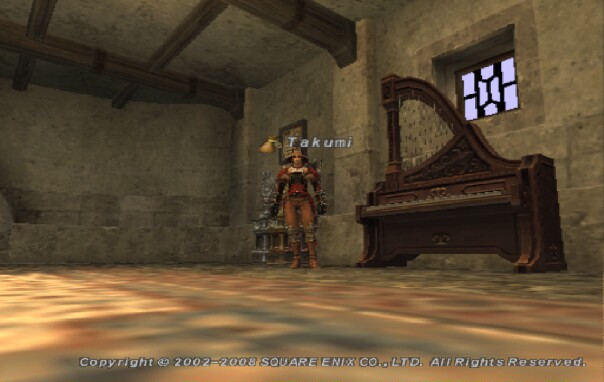 数日前に、FFXI・ピアノコレクションを買ったものですから、 特典の調度品、ハープシコードを貰ってきました(´ー`) なかなか豪華で見栄えのする楽器なんですが、 殺風景なバスのモグハには、ちょっと合ってない感じもしますね(´・ω・`)