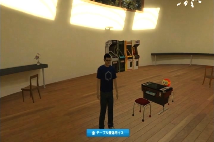 各プレイヤーには、部屋が与えられていて、いろいろレイアウトが変えられます。 さしずめ、モグハウスといった感じですね。 ナムコミュージアムBETAでげっとしたゲーム筐体を並べてみたりなんかして、 プチゲーセンみたいになってますw