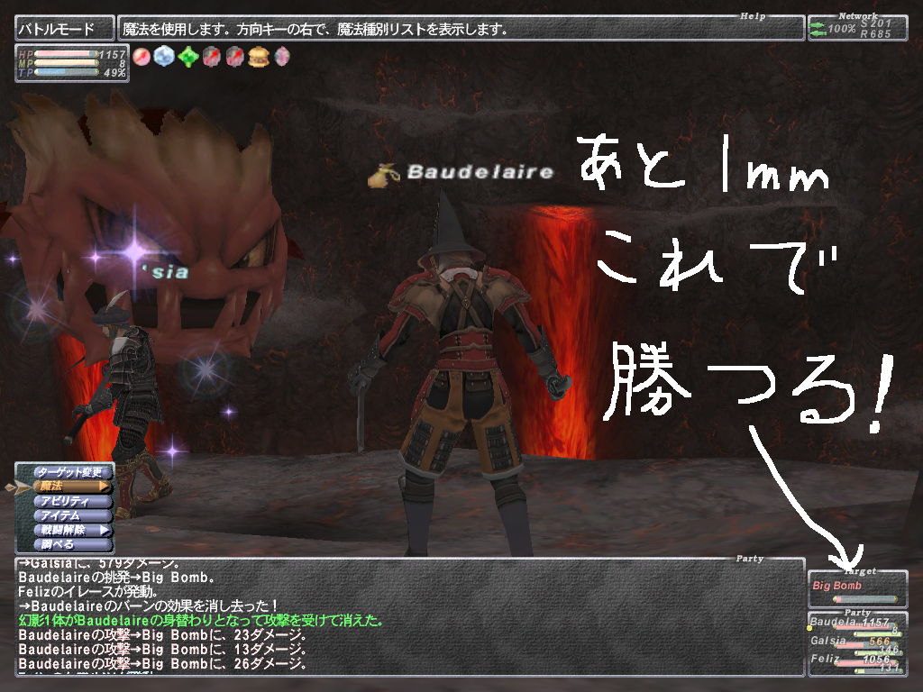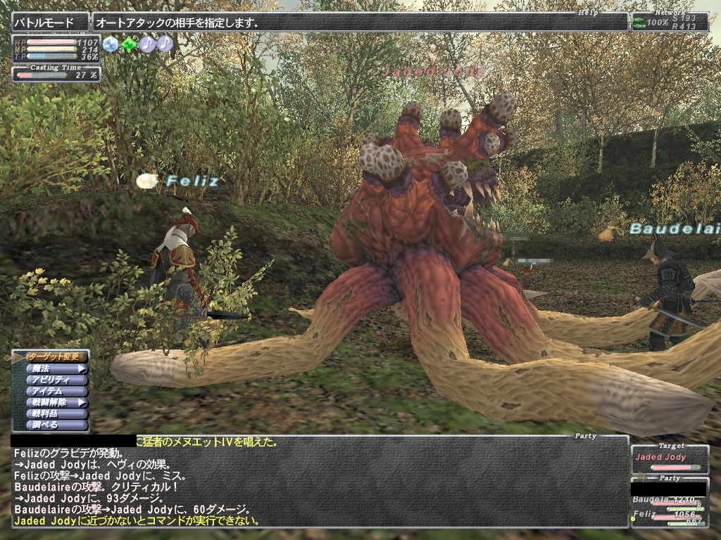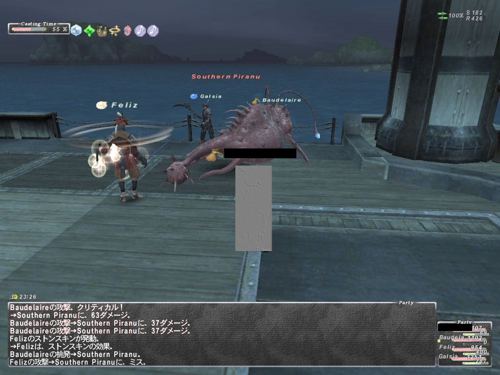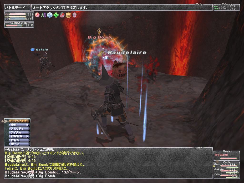 攻略情報は結構出回ってるので簡単に紹介 WSが結構いやらしいのが多いです。 WSは2つセットでつかってくるみたいで、範囲睡眠+急所付きWSのコンボとか してきます。寝てるのでかわせるはずもなくHP1にされちゃいます(´Д`)