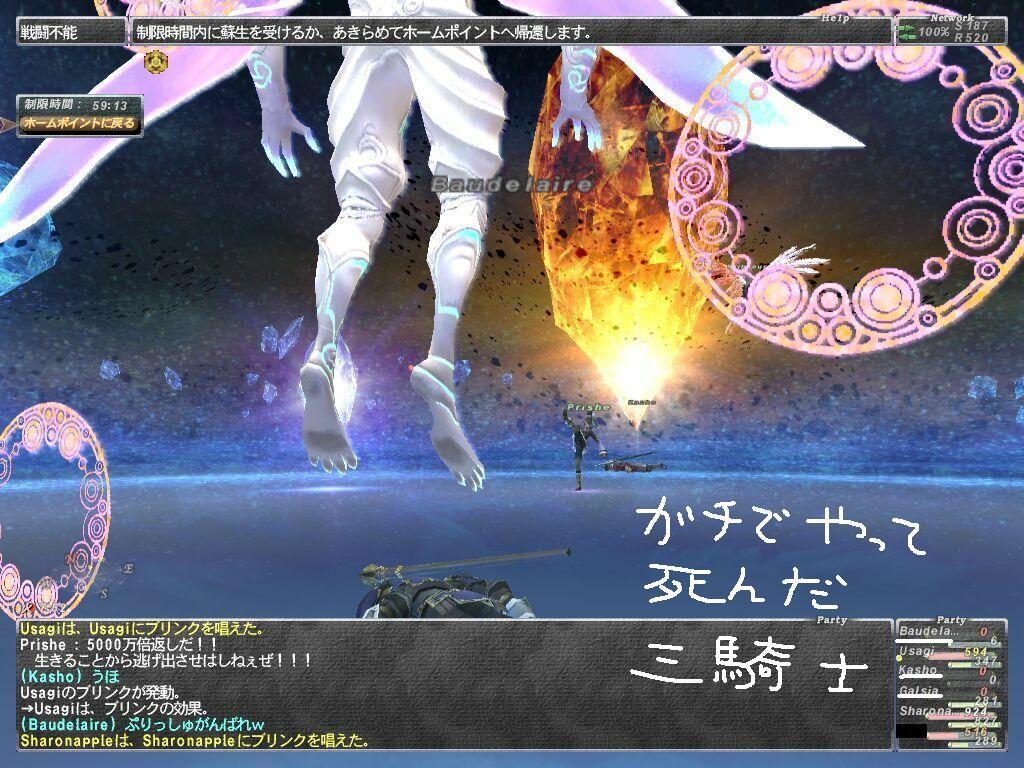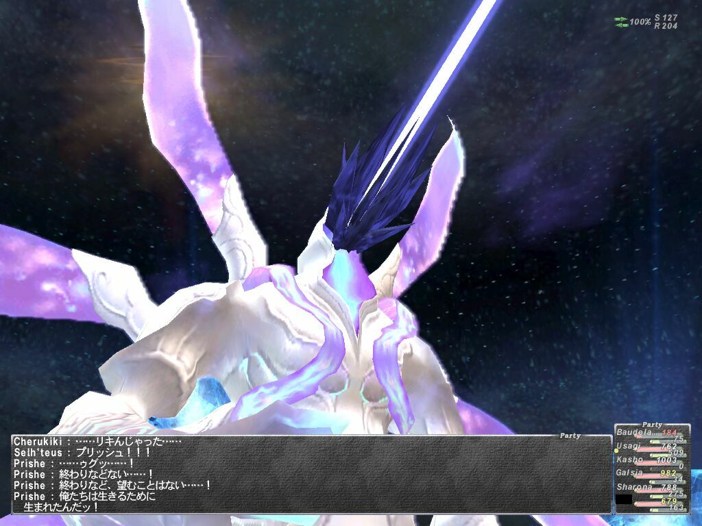オメガ戦は序盤はよわっちーなと思ってましたが、後半のWS連発がめちゃくちゃ きつかったです。範囲で400とかくらったり、蝉貫通で500とか食らいます。 しかもヘイトリセットもあるようで、後衛にタゲ行きまくってなかなか取り返せ なくて、何人か死んでしまいました。 そのあと何とかホントにぎりぎり倒せました。まじツヨスwwww