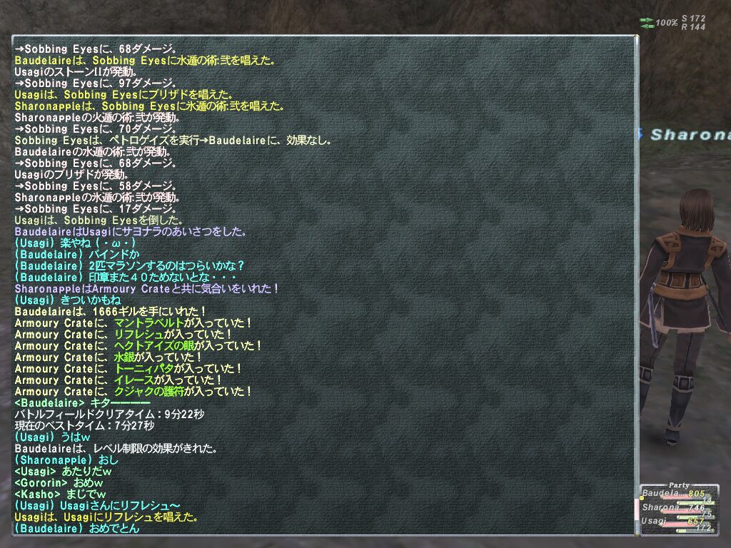 ドロップのほうは私達が合流してからは5,6戦?したけど刀落としたのは 1本のみ orz もう少しドロップいいと思ってたので残念でした。 私が自爆で死んだときにドロップしました・・・死なないとでないみたいですw